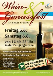 Ab 11:00 Uhr treffen sich in der Freilassinger Fußgängerzone Vespa-Liebhaber und Freunde italienischer Lebensfreude zum gemütlichen Vespatreffen. Bewundern Sie klassische und moderne Roller, tauschen Sie sich mit Gleichgesinnten aus und genießen Sie das besondere Flair. Freuen Sie sich auf kulinarische Spezialitäten, feine Weine und erfrischende Getränke gepaart mit italienischem Lebensgefühl. Für die anschließende Italienische Nacht sorgt Live-Musik für beste Stimmung. - & 6. Juni – Wein- und Genussfest